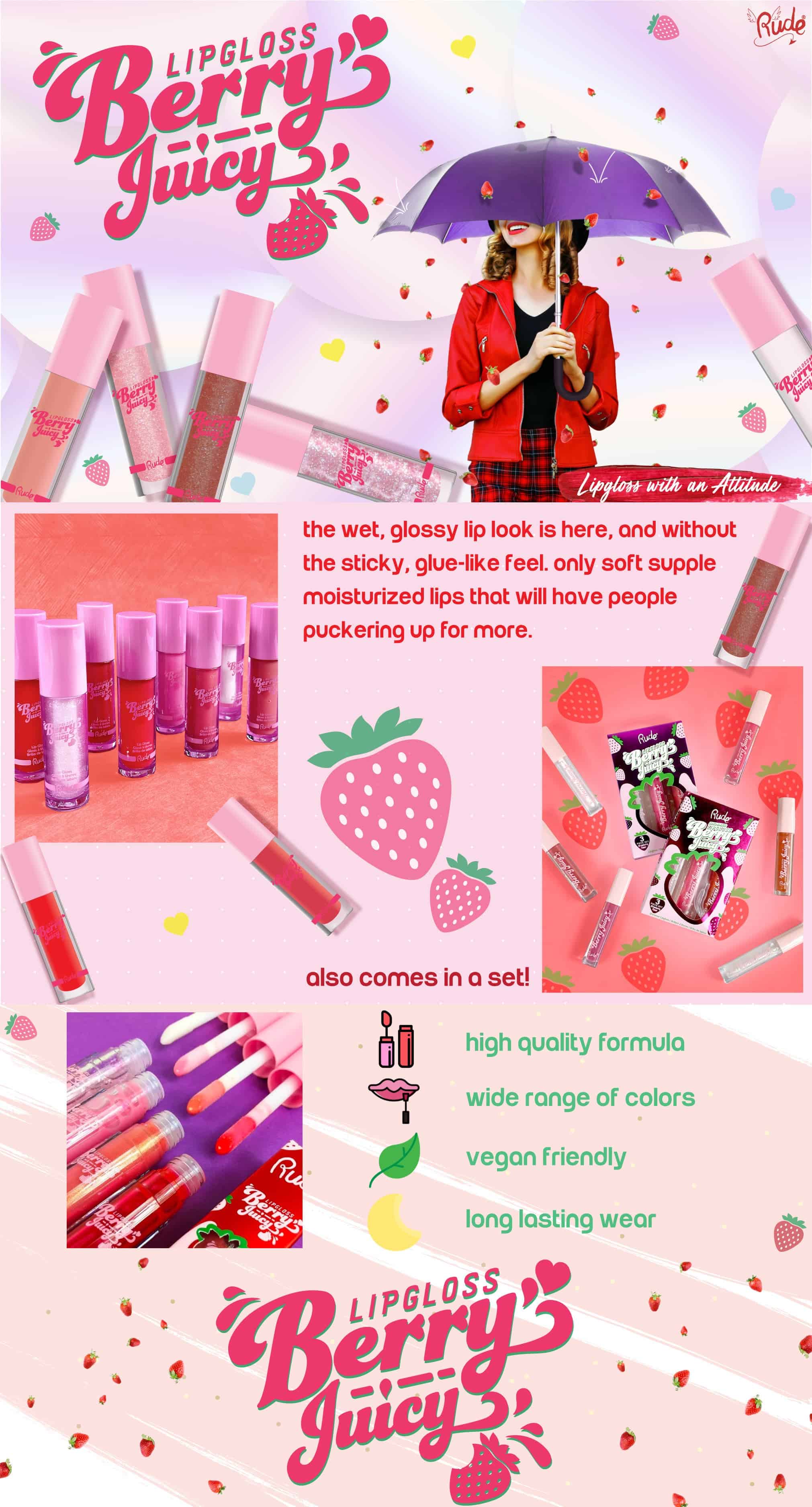 Sjaj za usne Berry Juicy omogućava vlažan i sjajan izgled Vaših usana, bez osećaja lepljenja. Jedino nežne i diskretno osvežene usne će privući poglede mnogih.